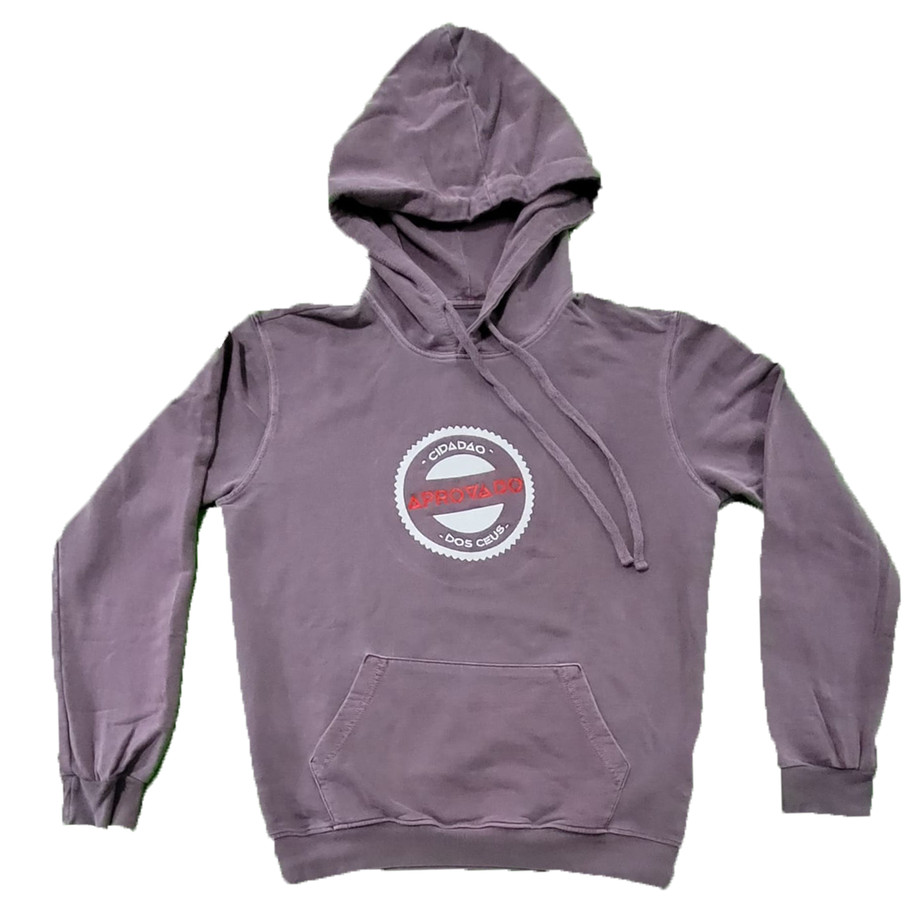 Moletom bordado com a frase "Cidadão dos céus" produzido em 2 cabos, 310 de gramatura, fio 30/1 penteado 100% algodão. Malha Premium, beneficiada com tratamento que alivia torções e encolhimento.